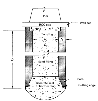 30°’lik düşey açı veya yataydan 2 düşeye eğimli bir I pratikte tatmin edici bulunmuştur. Beton kesonlarda kesici kenarın alt kısmı, çelik şeritler vasıtasıyla betona sabitlenen 12 mm çelik levhalarla sarılır.